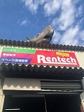 レンテックの看板とお局様が皆様をお出迎えしてくれます。