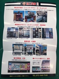 まず表面には、こうゆう事が出来ます!!の絵と看板メニューの一覧が載っていて、表面には今までに作っってきた看板の写真を載せています。