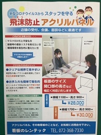 タイトルを見てお解かり頂けていると思うのですが飛沫防止パネルです。