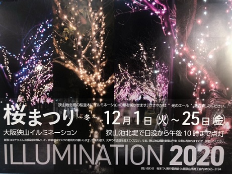 前回アップさせてもらいました狭山池のイルミネーションが12月1日より始まりました!!